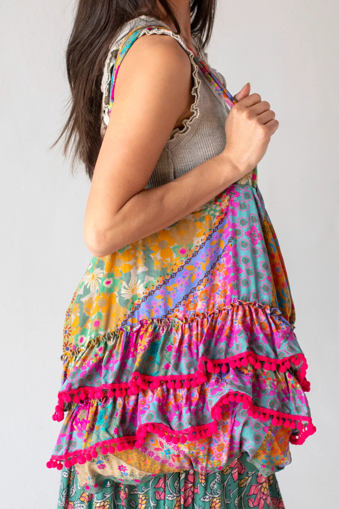 This vibrant Ruffle Tote Bag in multi patchwork design is your perfect companion for any...