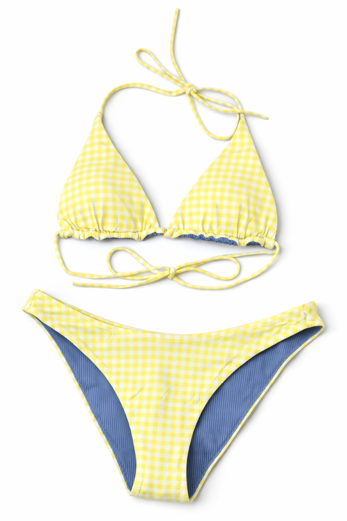 Make a splash this season in the Summer Crush Bikini, featuring a charming gingham pattern...