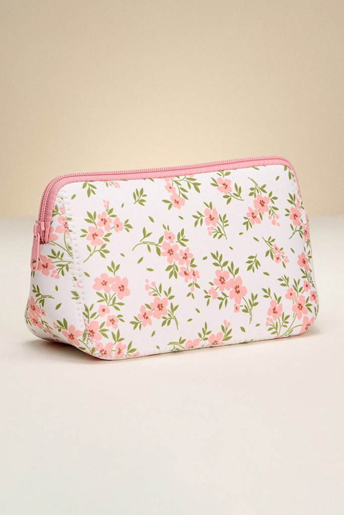 Keep your essentials organized in style with the Seraphina Floral Pouch. Featuring a charming flower pattern and a secure zipper closure, this cosmetic bag combines beauty and practicality. Its compact size makes it perfect for travel or everyday use, ensuring your makeup and small items stay neatly stored and easily accessible. Add a touch of elegance to your routine with this delightful pouch.