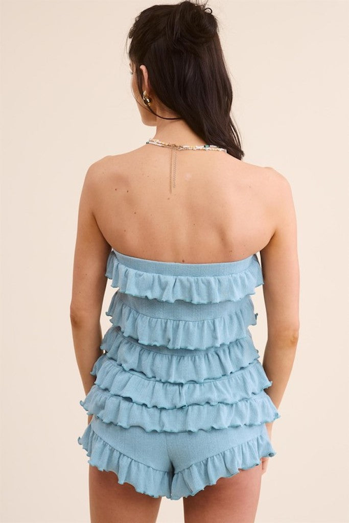 Melrose Ruffled Romper- Light Blue