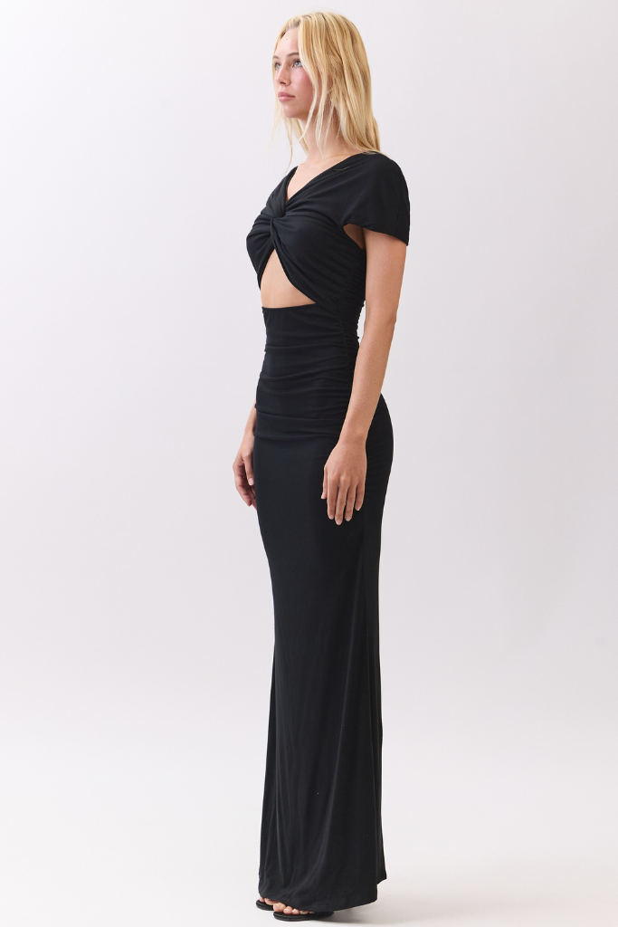 The Nellie Twist Maxi Dress combines bold design with everyday wearability. A striking twist front detail at the bust pairs beautifully with a strategic waist cutout for modern appeal, while the soft stretch jersey knit moves with your body for all-day comfort. The back slit ensures effortless stride, and the flattering V-back neckline adds an elegant finishing touch. Perfect for making a statement at any occasion.